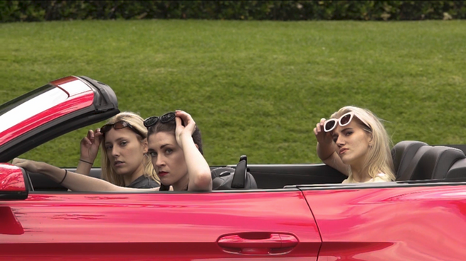 "This short short satirizes the trope of L.A. girls hanging out of convertibles, young, beautiful and rich. Just like they do in the movies, or music videos, they joyously reach toward the palm trees above, or lift up their sunglasses and stare at the camera lustily in slo-mo over thumping beats. Meola strips away everything else, leaving only the empty montage — a funny but unsettling effect."